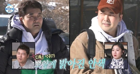 찜질방(릴라이프 자연치유센터)을 다녀오고 난 전과 후, 뽀얗게 밝아진 안색의 나혼자산다 전현무 입니다. 확실히 차이가 있는 것 같습니다.