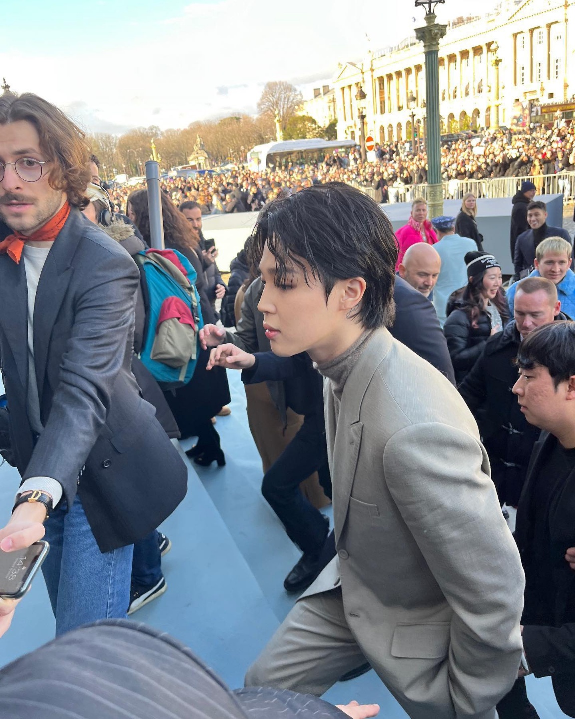 방탄소년단 지민의 등장으로 ''Dior Men Winter 2023-2024 Show'가 시작되기도 전부터 이미 튈르리 정원 광장은 지민을 조금이라도 더 가까운 장소에서 보기위해 모인 인파들로 이미 마비 상태였다. (이것도 아래쪽에 함께 올린 영상을 참고하세요)