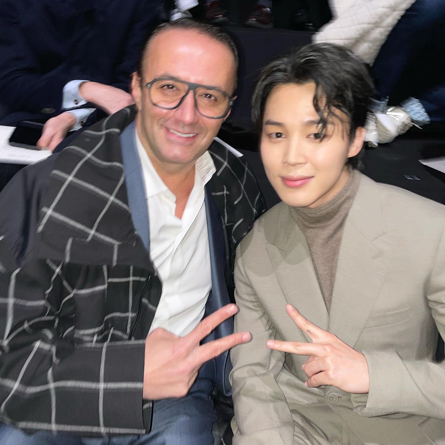 eyesmagazine 아이즈매거진님이 Instagram에 게시물을 공유했습니다:"글로벌 앰버서더로 발탁된 후 첫 행보로 디올(@dior) 23 가을, 겨울 맨즈 컬렉션에 모습을 드러낸 지민.❤️ 그가 <아이즈매거진> 독