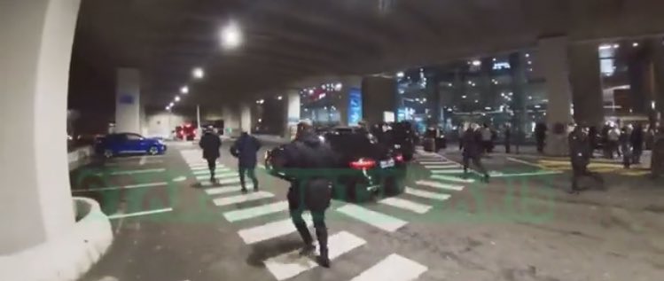 마치 철통과도 같은 경호 속에서 한남성이 외치는 목소리가 들립니다 "BTS??? BTS!!! JIMIN??? oh JIMIN!!!!!!!"