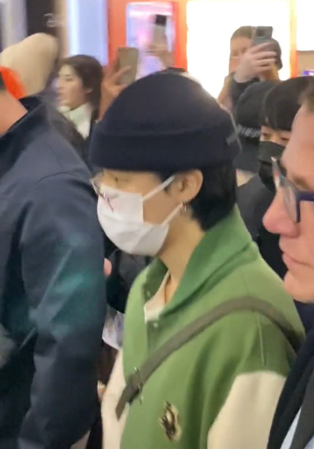 마치 철통과도 같은 경호 속에서 한남성이 외치는 목소리가 들립니다 "BTS??? BTS!!! JIMIN??? oh JIMIN!!!!!!!"