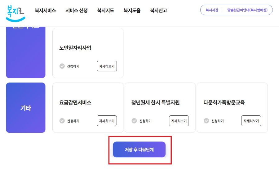 "저장 후 다음단계" 클릭해주세요. 그런후 "복지급여신청" 해주시면 부모급여 신청이 완료됩니다. 각 관할 담당자에게 유선으로 전화나 문자로 통보가 올거예요. 기다려주세요.