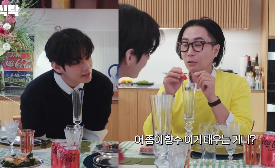 이번 방송에서 뷔는 향 제품과 함께