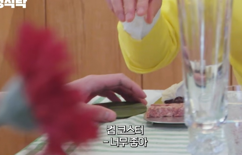 집에 있던 코스터를 직접 가져왔다는 점에서