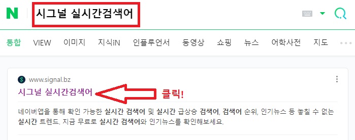 네이버 검색창에 '시그널 실시간검색어'를 검색합니다.