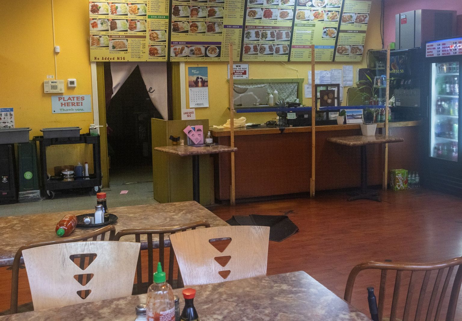 15일(현지시간) 레이니어 테리야키와 바는 문을 닫았다. 내부에는 14일 총격 사건으로 인한 혼란의 미묘한 잔재가 남아 있었다.