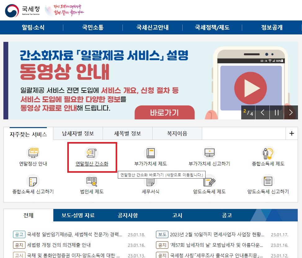 ① 국세청 "연말정산간소화" 서비스에 들어가서 "일괄제공 신청서" 출력해서 회사에 제출하기!