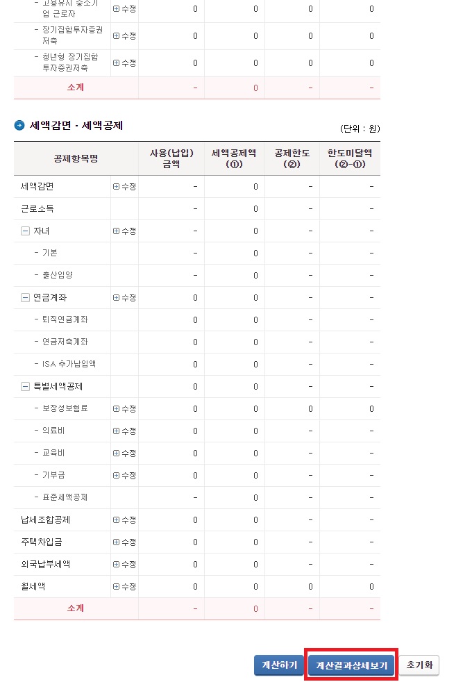 세액공제와 관련된 부분도 넣어주세요. (의료비, 교육비, 기부금, 월세, 연금계좌 등 빼먹지않고 넣어줍니다.