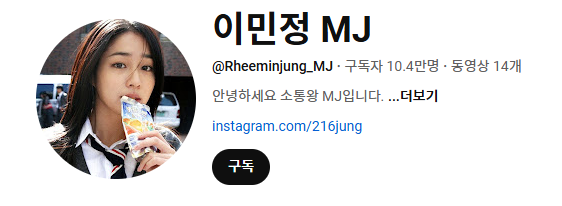배우 이민정 유튜브 링크 & 주소 바로가기 클릭! 아래 이미지를 클릭하면 이민정 유튜브 이민정 MJ 바로가요!