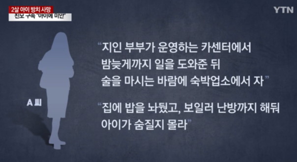 또한 "집에 밥을 놔뒀고, 아이가 추울 것으로 예상돼 집의 보일러 최대한 높인 뒤 집을 나섰다. 2살인 아이가 숨질지 몰랐다. 집을 장기간 비울 생각은 없었다"고 말한 것으로 확인됐다.