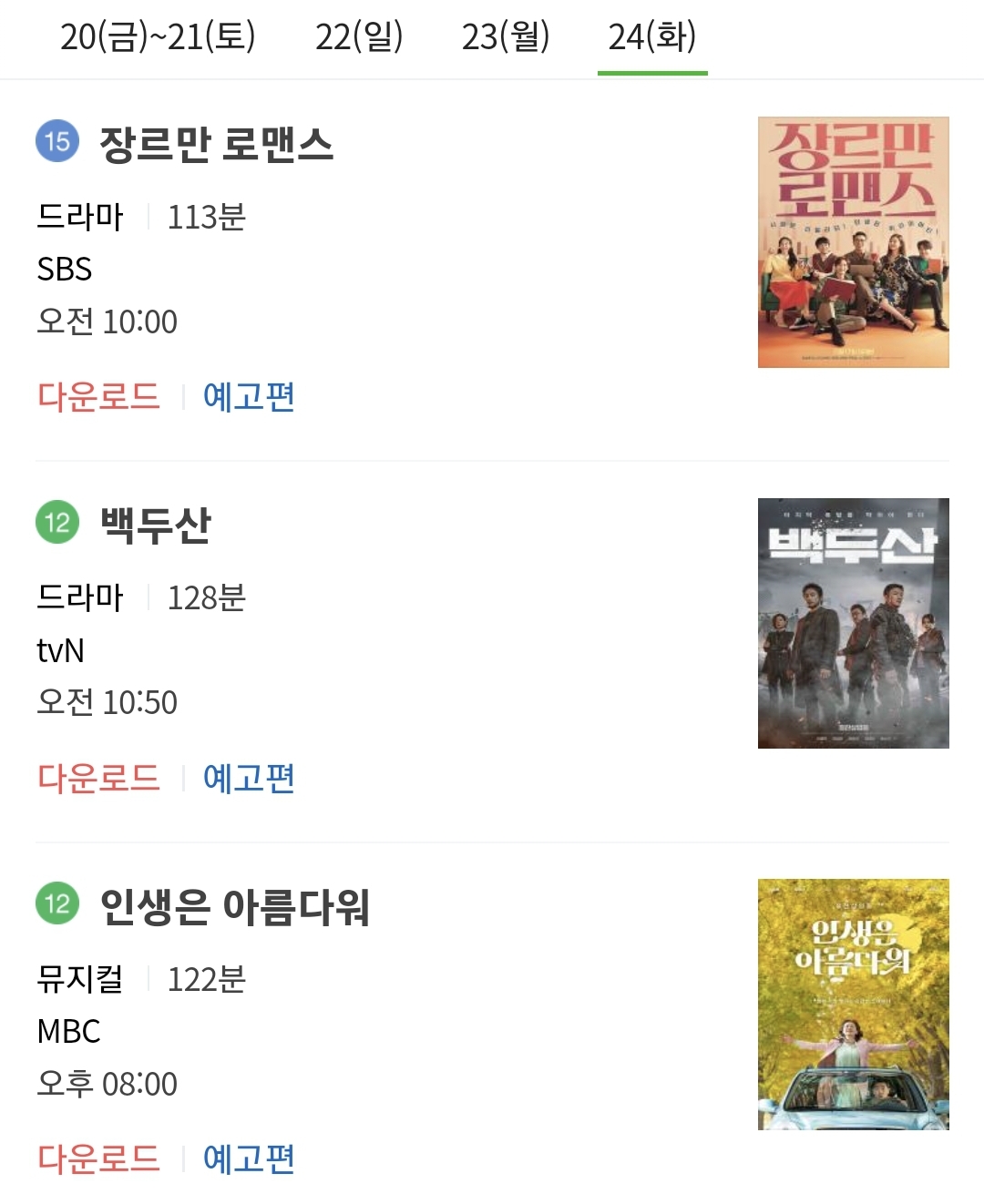 2023 설 특선 영화 편성표 (1월24일 (화))
