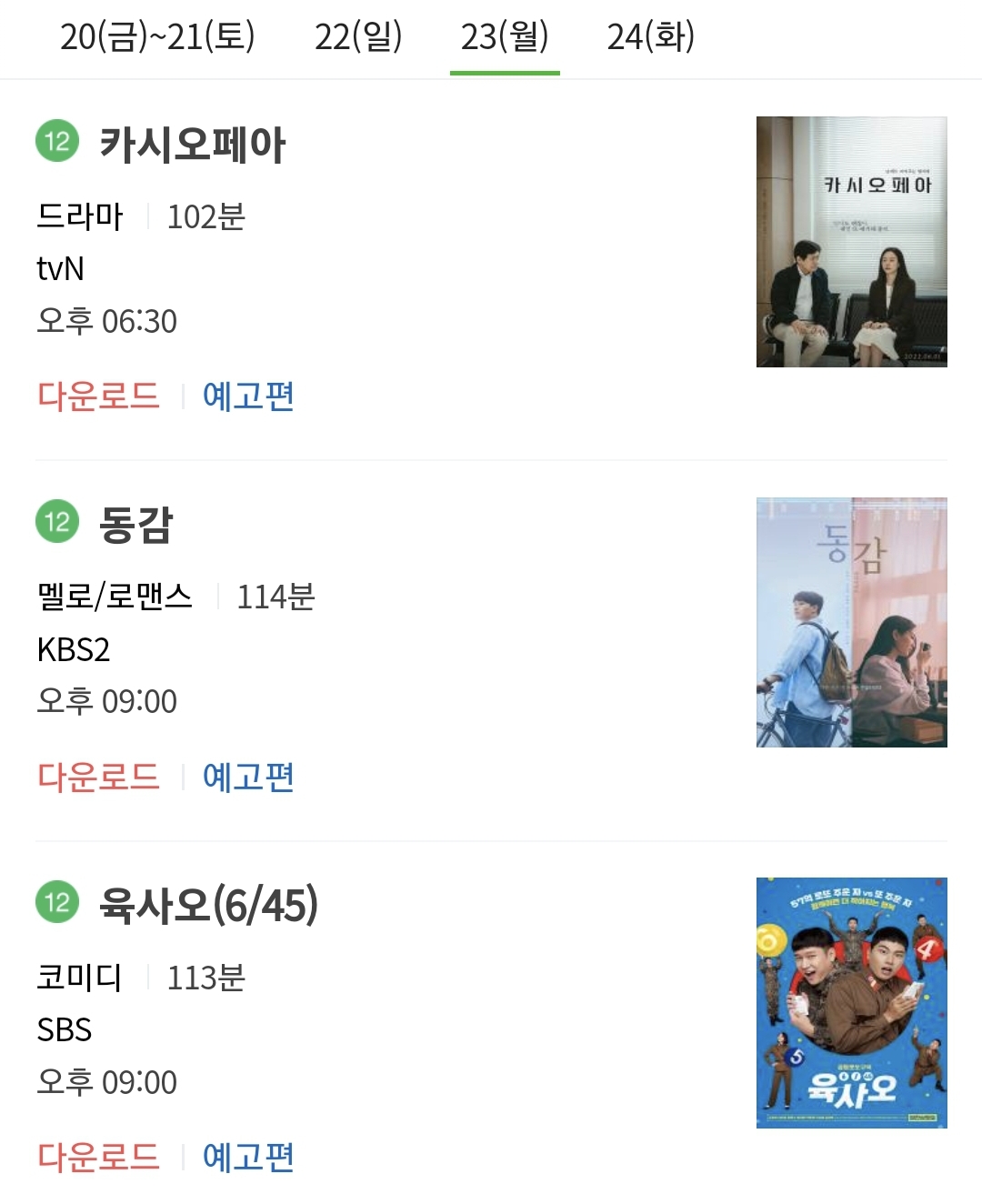 2023 설 특선 영화 편성표 (1월23일 (월))