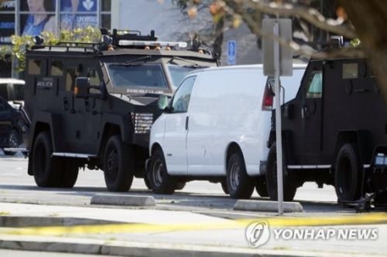 경찰 특수기동대(SWAT)는 총격 사건 이후 캘리포니아주 토런스에서 용의자가 타고 달아난 것으로 보이는 흰색 밴 차량에 대한 수색 작업을 진행했다.